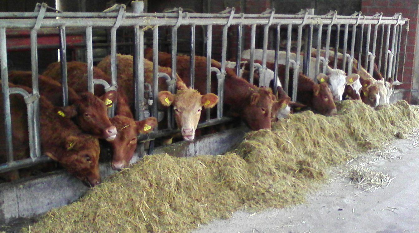 Auf dem Weberhof leben etwa 75 Kühe, Kälber und Jungtiere der Rassen Fleckvieh, Limousin und Charolais.